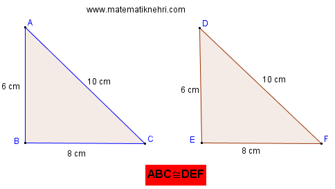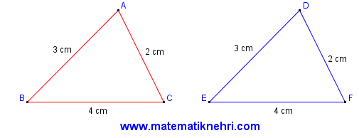 Yukarıdaki iki üçgenin Karşılıklı olarak kenar uzunlukları eşit olduğu için bu üçgenler eş üçgenlerdir.